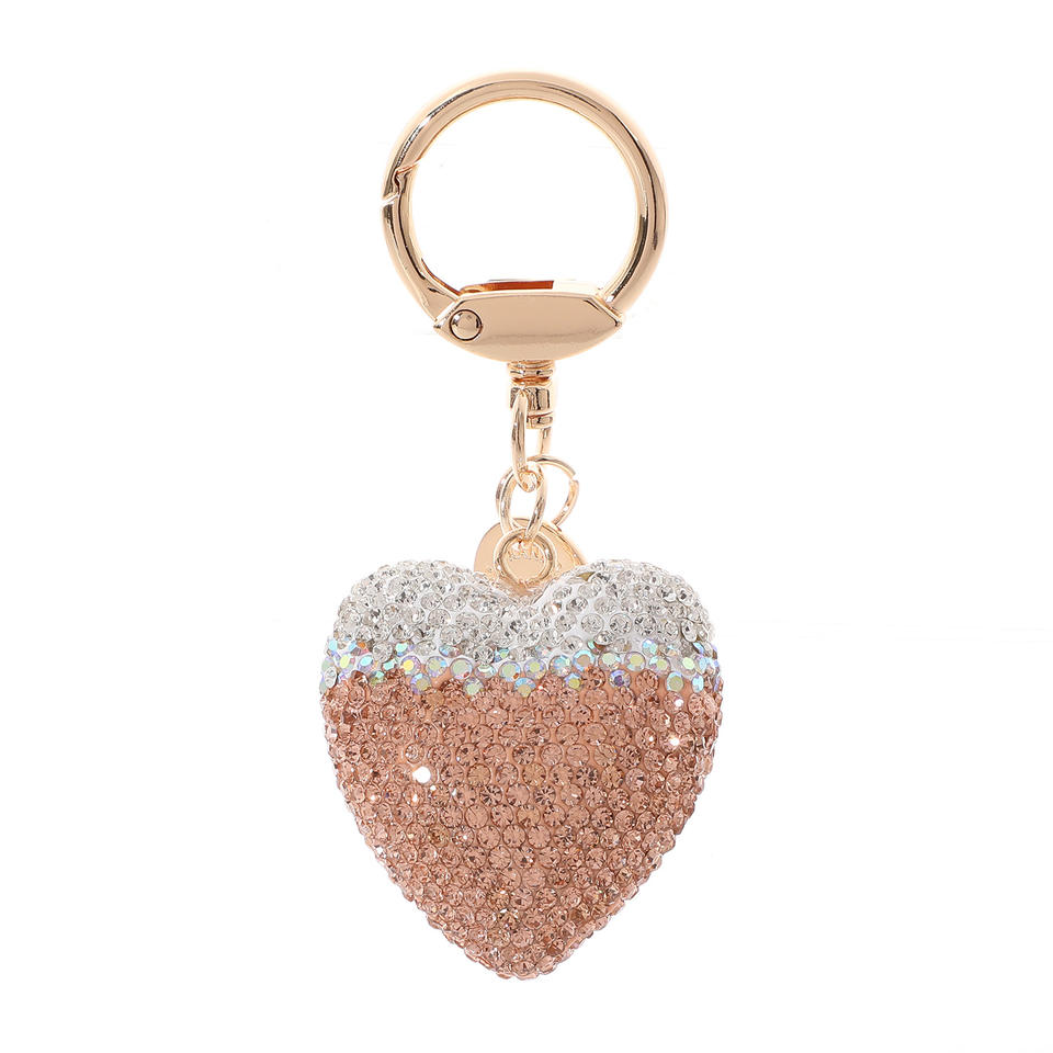 Luxury Bling Crystal Heart Keychain Women's Red Peach Rhinestone Keyring Diamond-shaped Keychains with Pendant Charm