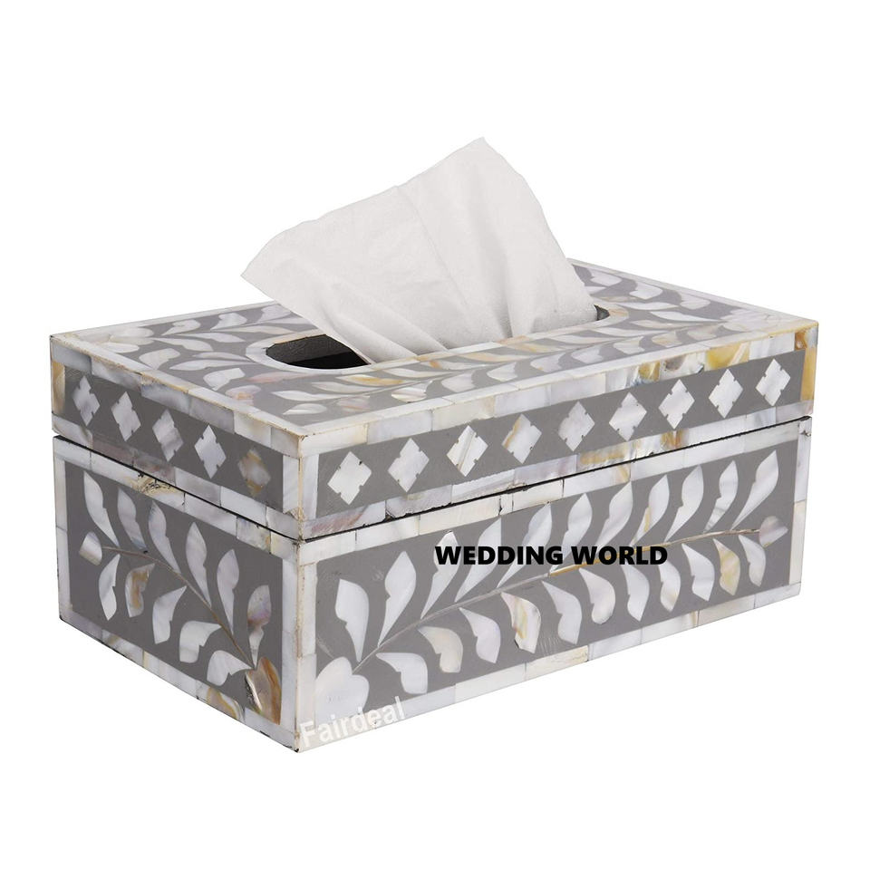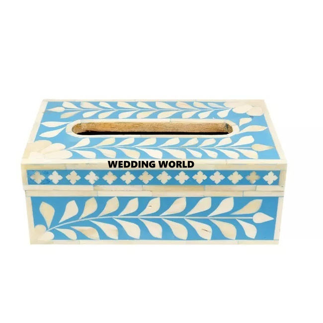 Boîte à mouchoirs en bois de couleur bleue de luxe classique élégant fait à la main Top vente Table décorative nouvelle boîte à mouchoirs en bois en gros