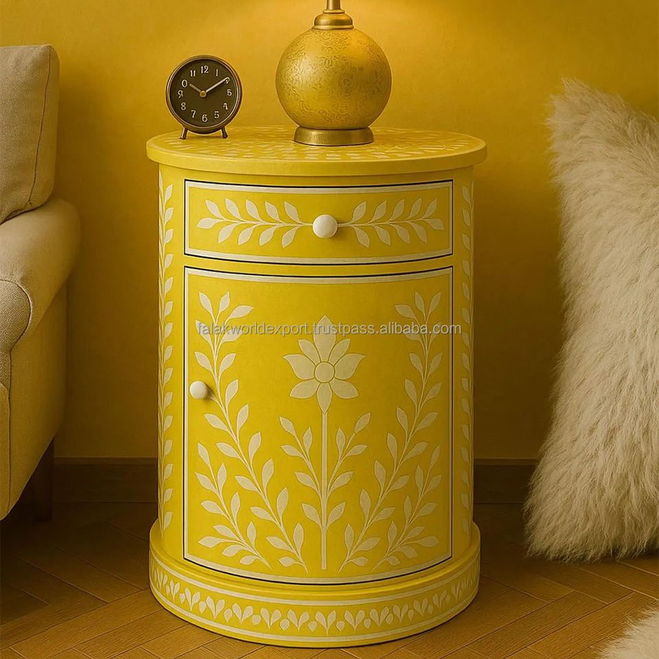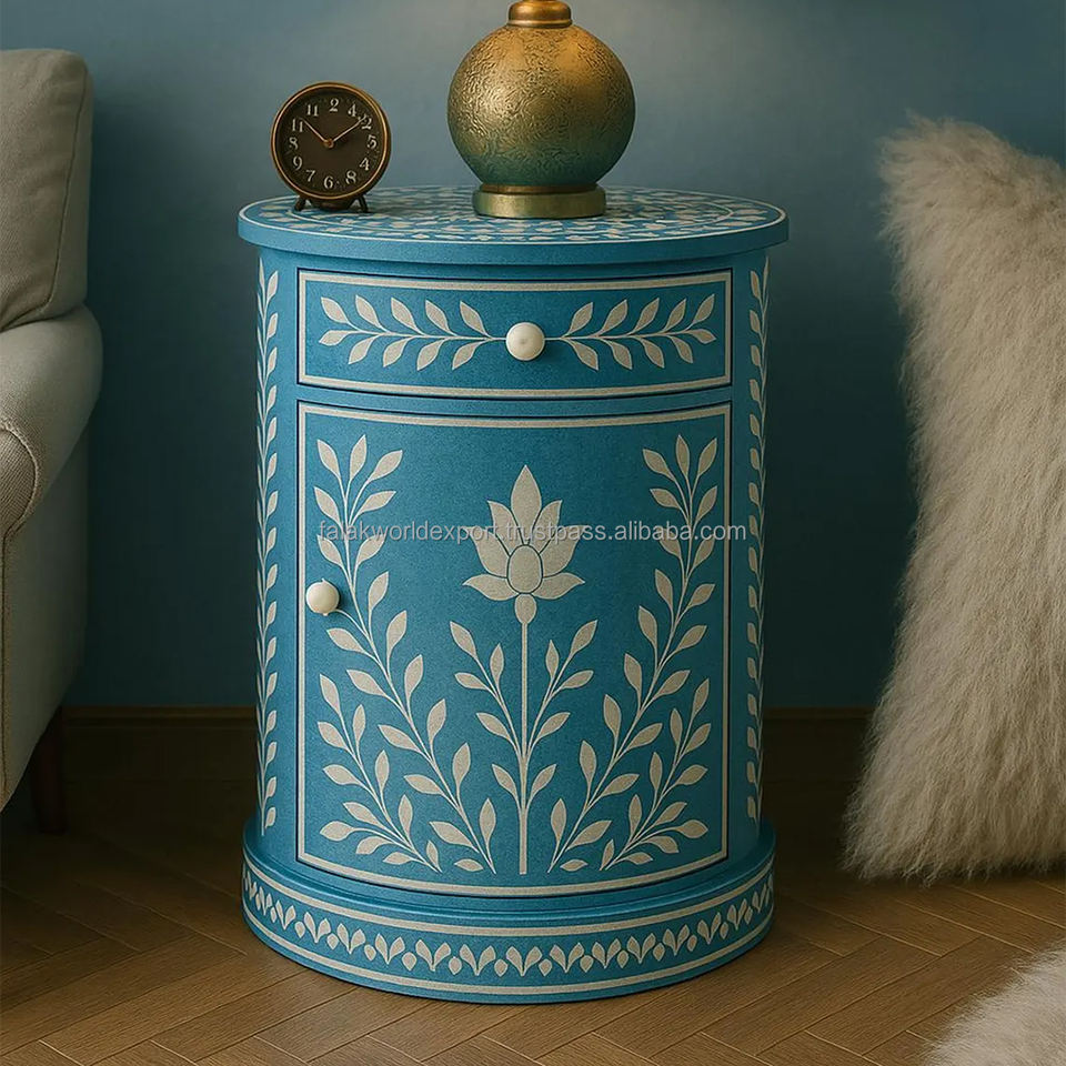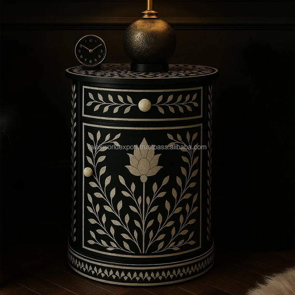 Table de chevet de luxe en incrustation d'os pour la maison et l'hôtel Tabouret personnalisé en incrustation d'os Table console ronde en incrustation d'os à vendre par FWE