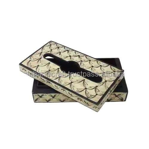 Boîte à mouchoirs de luxe en os incrusté pour décoration de table avec logo, motif floral décoratif en nacre incrustée