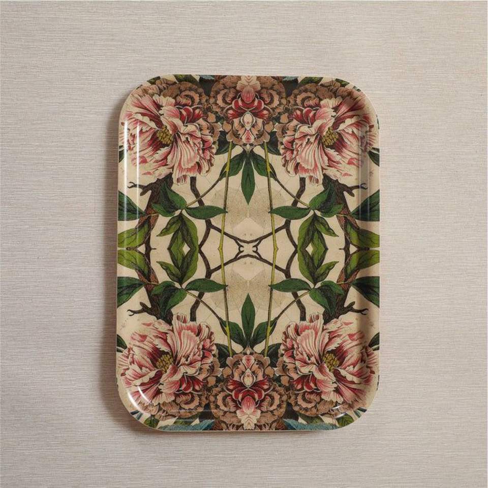 Plateau de service rectangulaire en métal à imprimé botanique de luxe, plateau décoratif en émail pour collations, plateau moderne à motif de feuilles pour la décoration de la maison