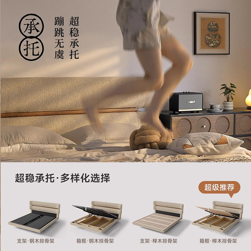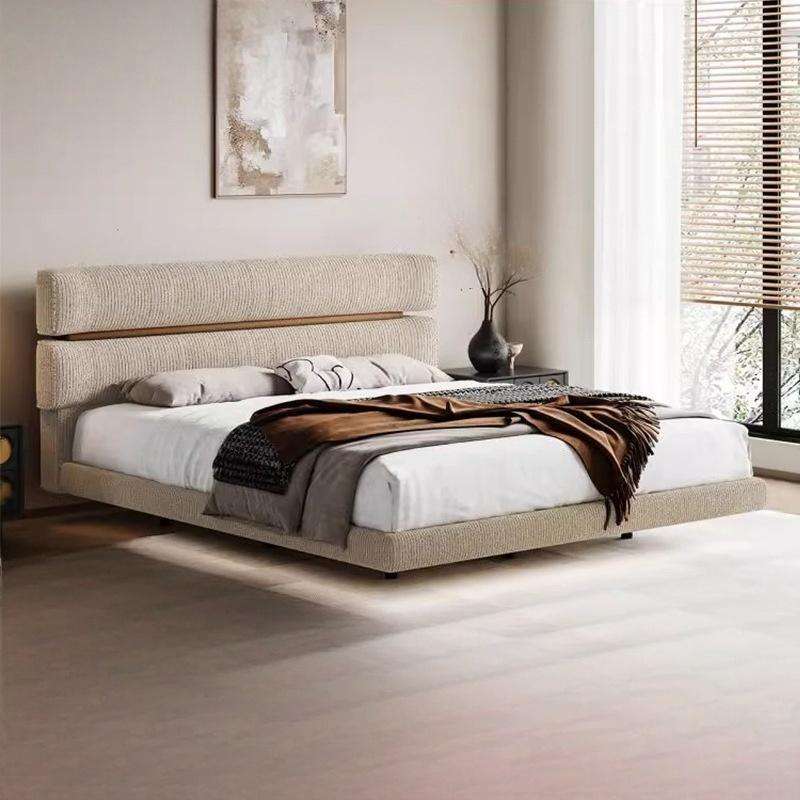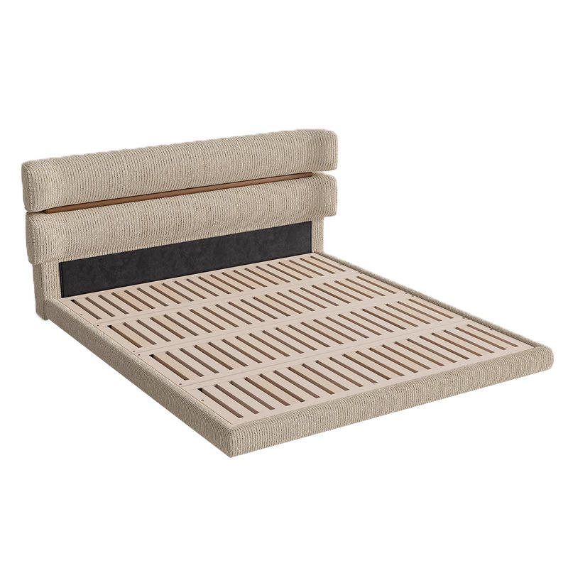 Cadre de lit flottant LED de luxe en bouclette, lit design italien minimaliste rembourré, base robuste, mobilier d'hôtel sur mesure