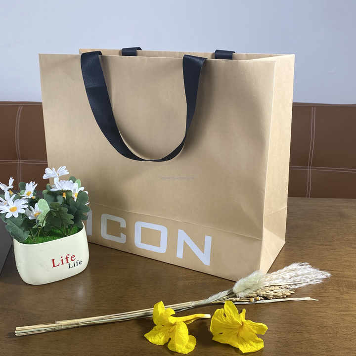 Nom du produit:Sac en papier kraft recyclé marron et blanc avec logo personnalisé