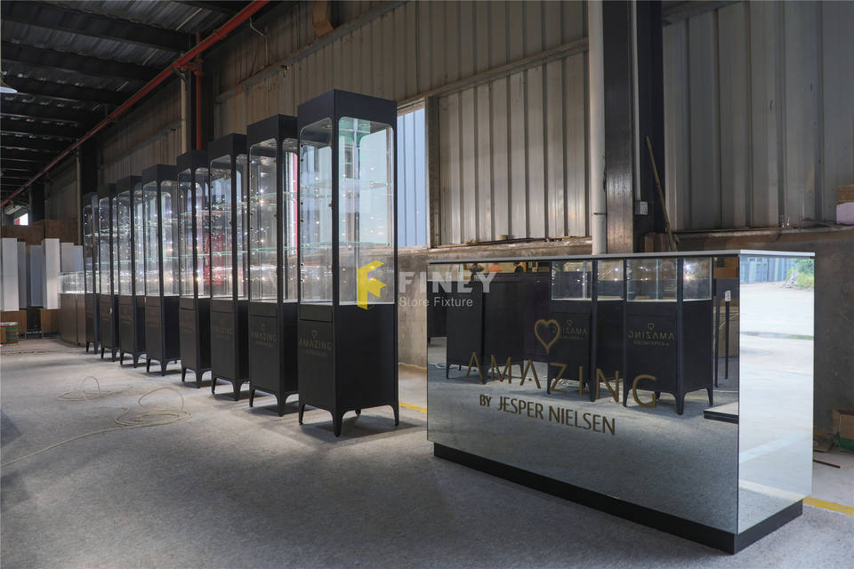 Vitrine de boutique de luxe avec lumière LED Cabinet Diamond Jewelry Wall Display for Shop Interior Design Fitting