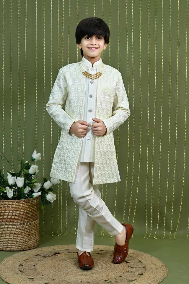 Luxury Children Boys Sherwani Silk Traditional Wedding & Party Wear Elegant Ethnic Design Wrinkle Free Sun Protection Quick Dry