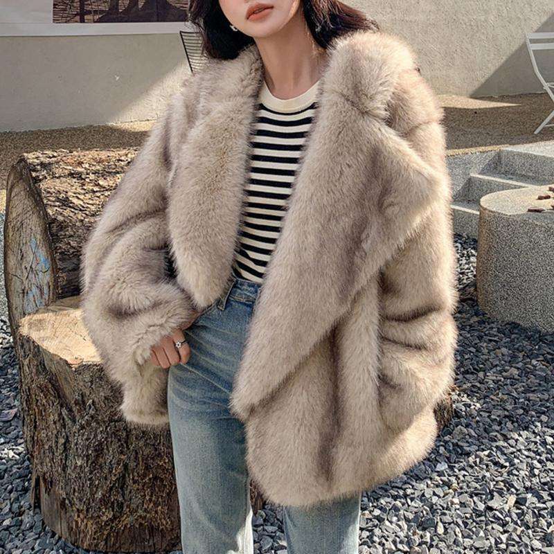 Manteau en fausse fourrure de luxe, couleur dégradée, motif animal, veste pour femme, hiver 2023, ample, surdimensionné, long et moelleux