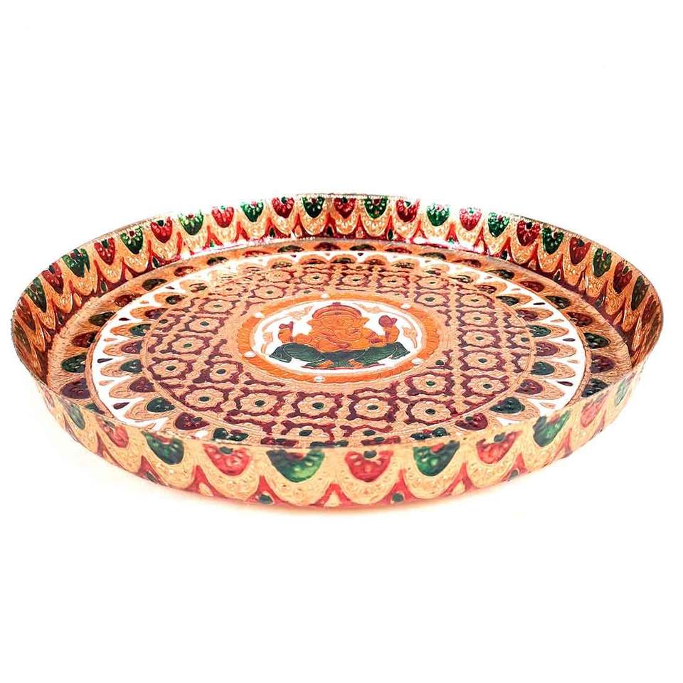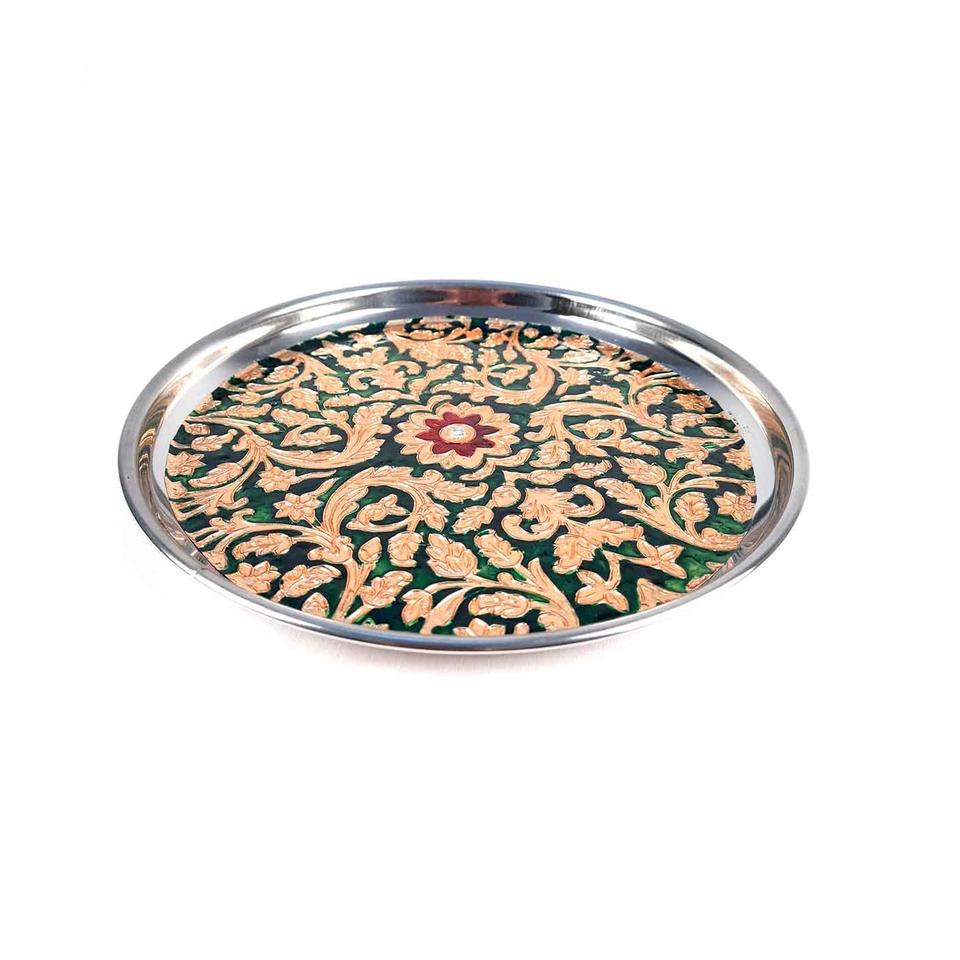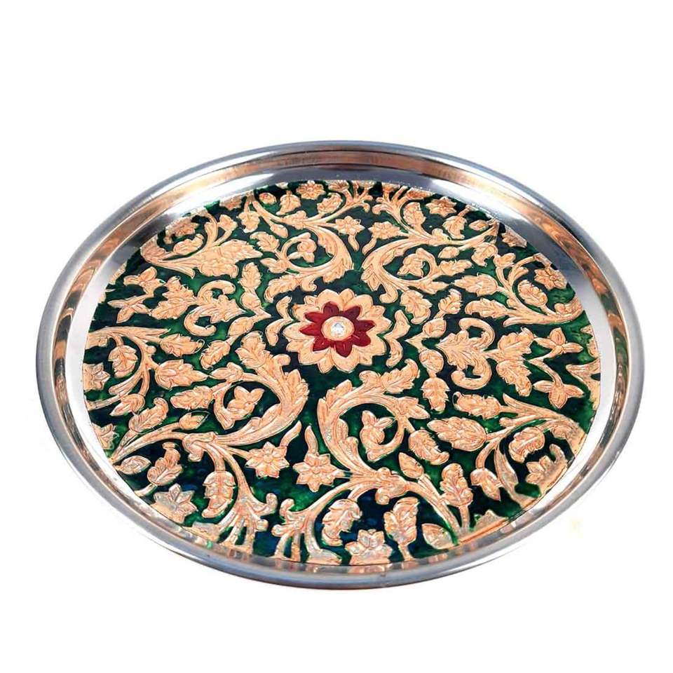 Luxury Brass Parat Thali Plate Dinnerware Spiritual Gift House Warming Gift Home Decor Solid Engraved Eco-Friendly American