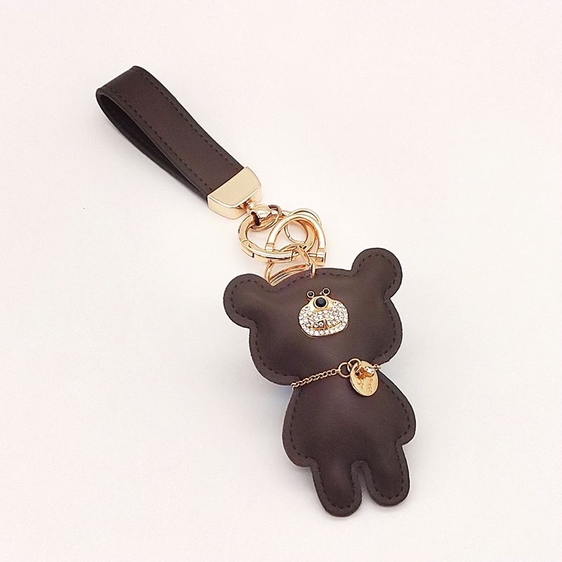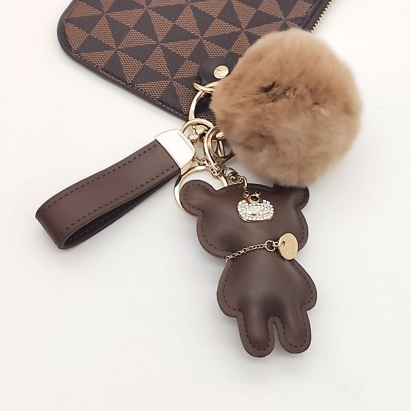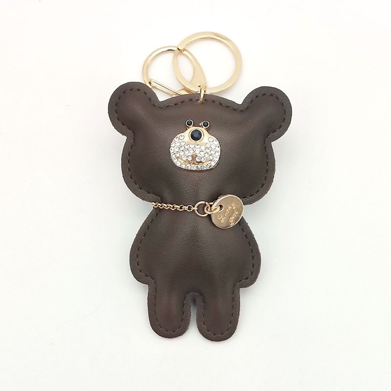 Porte-clés de luxe en cuir PU marron, petit porte-clés Bling, ours, avec pompon, vente en gros