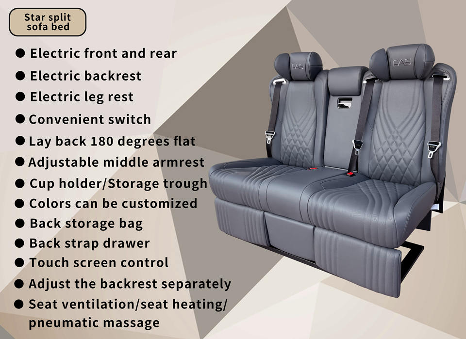 Siège de voiture de luxe siège arrière canapé-lit avec accoudoir repose-jambes banc réglable pour Benz v Class Sprinter Kia Carnival