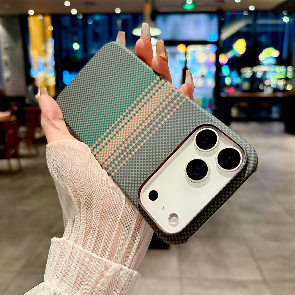 Étui de téléphone magnétique en polycarbonate rigide texturé en fibre de carbone de luxe pour iPhone Air 17 16 15 14 13 12 Pro Max, coque de téléphone portable antichoc