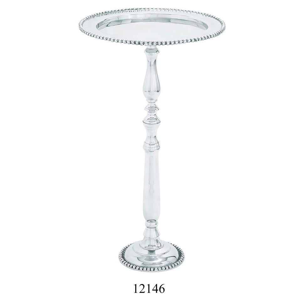 Luxury Cast Aluminum Side Table Round Top Classy Design Metal Tray Table Silver Bed Side Table for Living & Home Decor