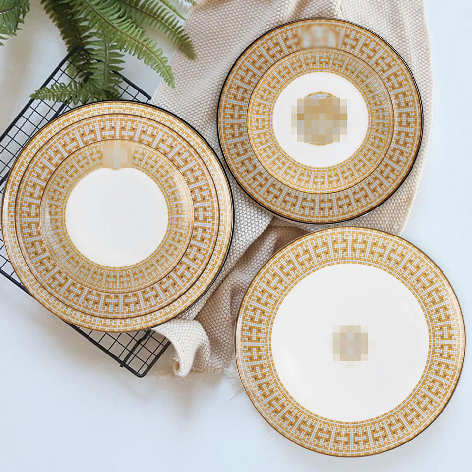 Assiettes à dîner en céramique de luxe avec logo personnalisé Assiettes de présentation dorées vintage en porcelaine pour mariage