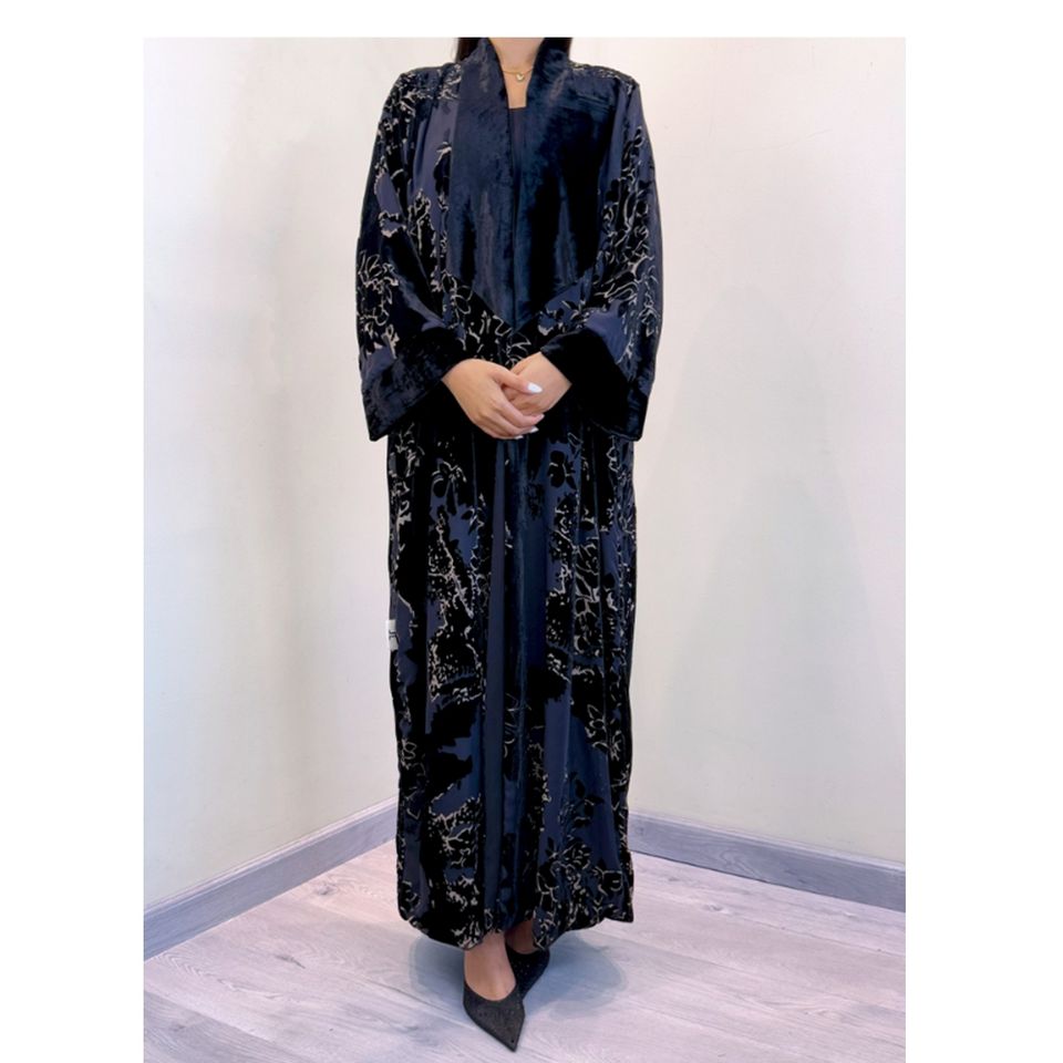 Product name:Design Modern Cuts Elegant Detailing Velvet Abaya Robe Tendance 2024