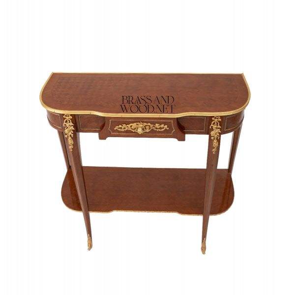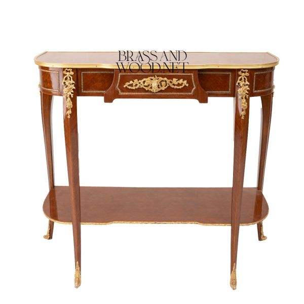 Luxury Classic Console Table Handcrafted Wood with Gold Brass Details Lower Shelf French Style Furniture
