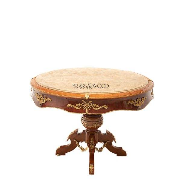 Table d'entrée classique de luxe en marbre, laiton et bois