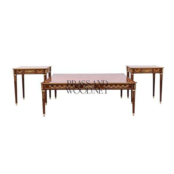 Ensemble de table basse rectangulaire classique de luxe avec deux tables d'appoint
