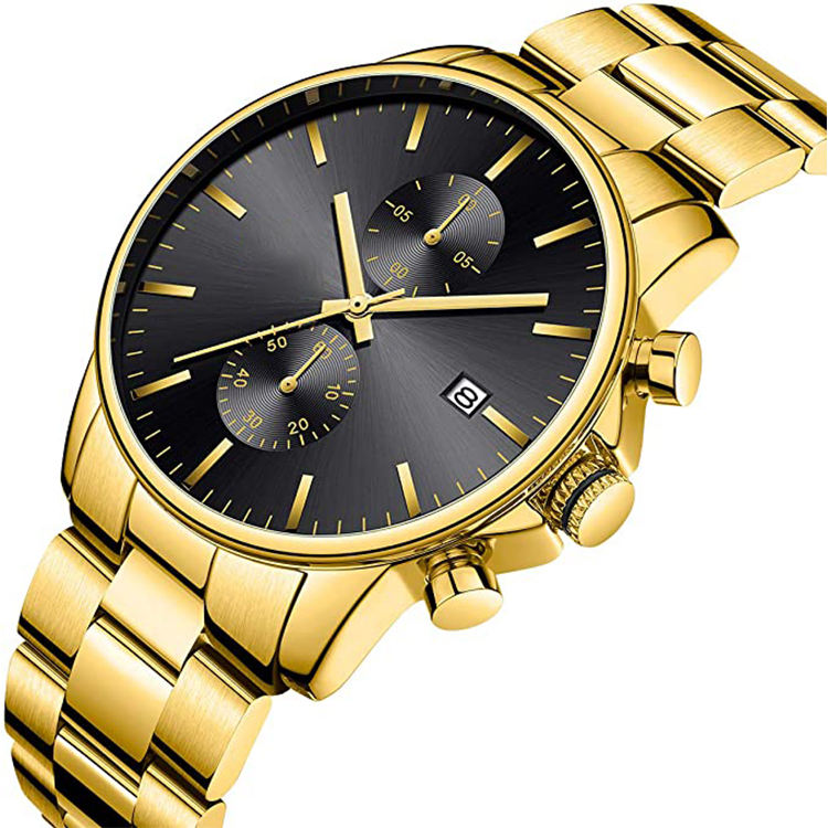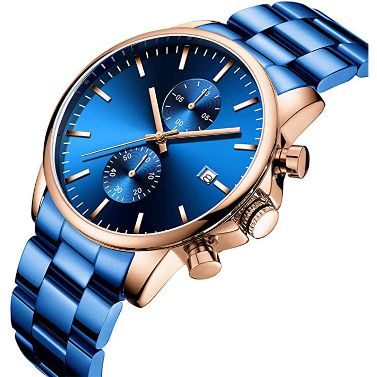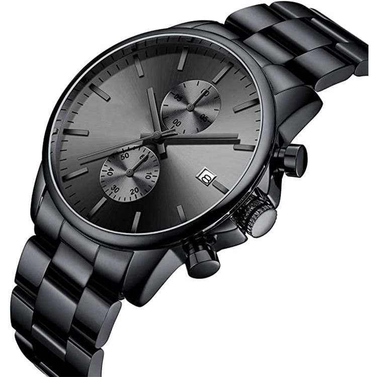 Montre à quartz classique de luxe en acier inoxydable à cadran analogique pour hommes chronographe étanche avec logo personnalisé en vente