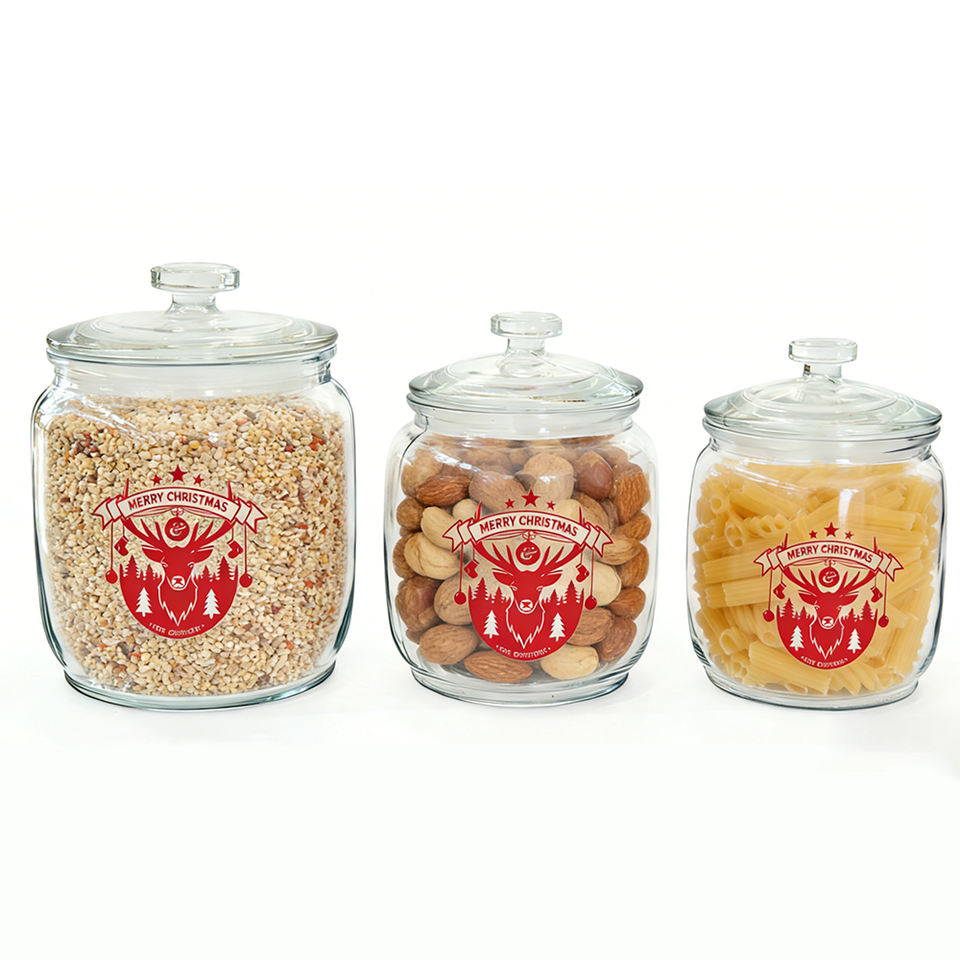 Ensemble de pots en verre transparent de luxe avec motif personnalisé cuit au four, 700 ml et 1500 ml, récipient de stockage alimentaire carré décoratif pour cadeau de mariage