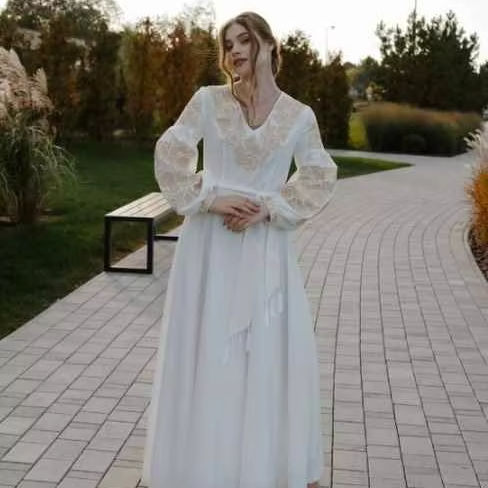 Luxury Clothing Women Boho Beach Designer Dress White Floral Embroidered Long Sleeve Maxi Dress Summer Linen Cotton Dress