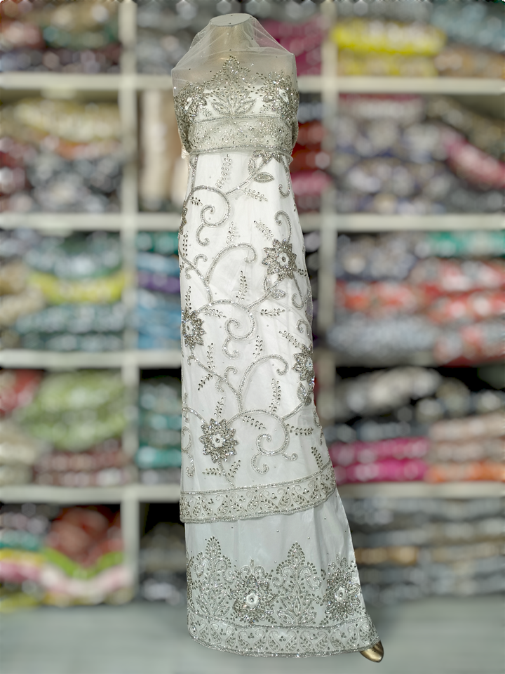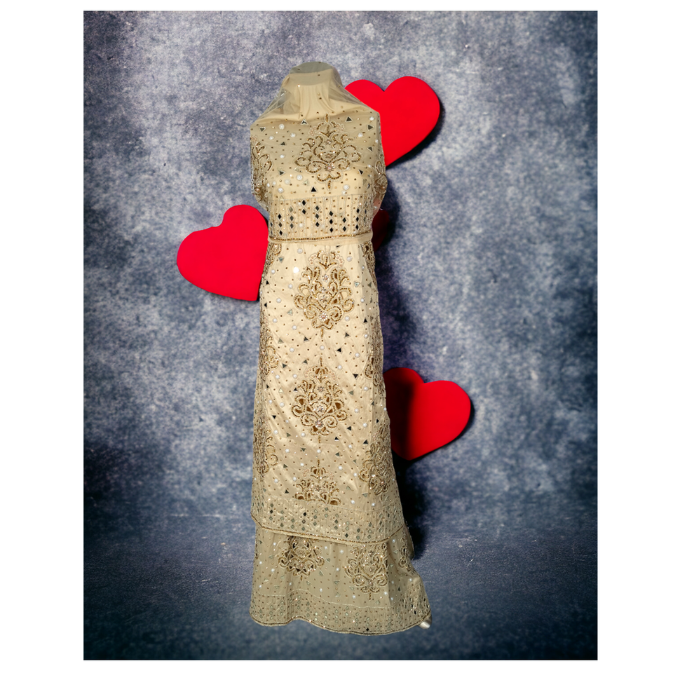Collection de luxe 2.5 + 2.5 mètres ensemble or lourd multi-stroned perlé fleur travail soie George robe respirant pour l'été printemps