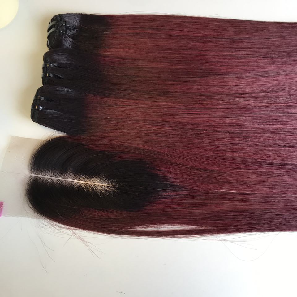 Cheveux vietnamiens crus de qualité supérieure de trame de machine d'extensions de cheveux vietnamiens colorés de luxe couleur rouge et cheveux colorés