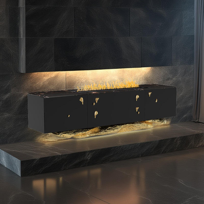 Buffet de luxe au design contemporain avec cheminées en marbre coulé en cuivre laqué très brillant pour meubles de salon TV