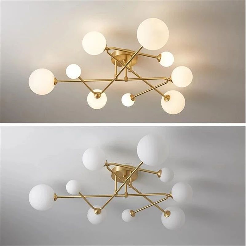 Luxe Cuivre Lampe Suspendue Au Plafond Doré Moderne Boule De Verre Led Lustre