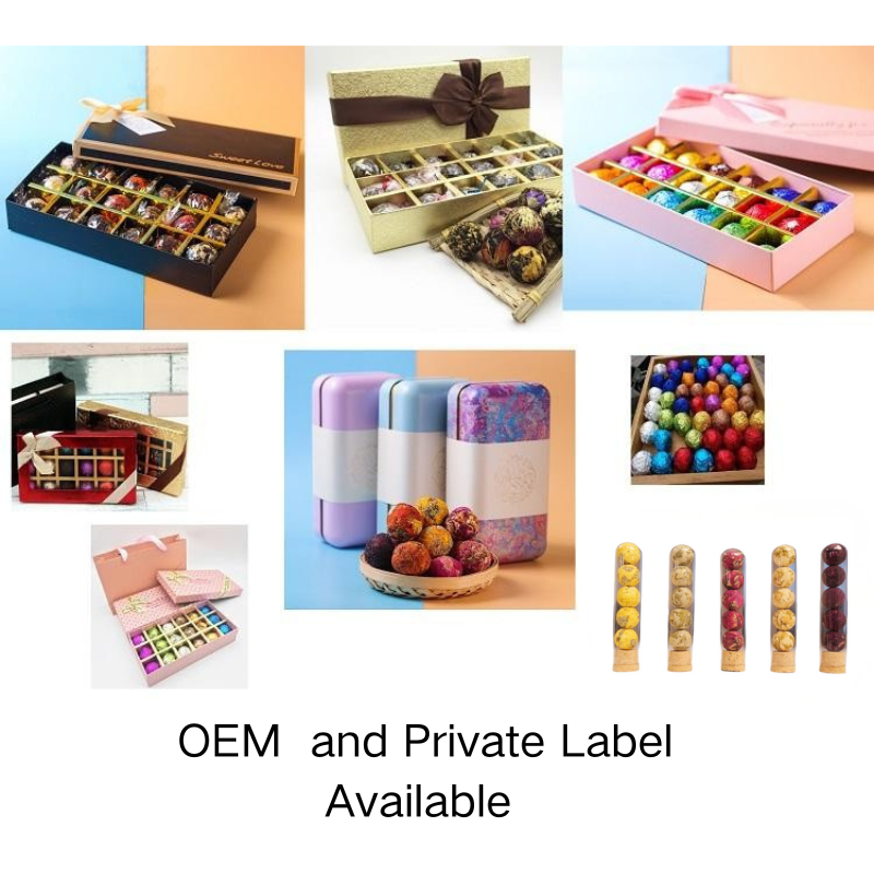 Coffret cadeau d'entreprise de luxe, thé fleuri - Boules de thé Pu'er bio, logo personnalisé, panier de bien-être haut de gamme pour les fêtes et les événements