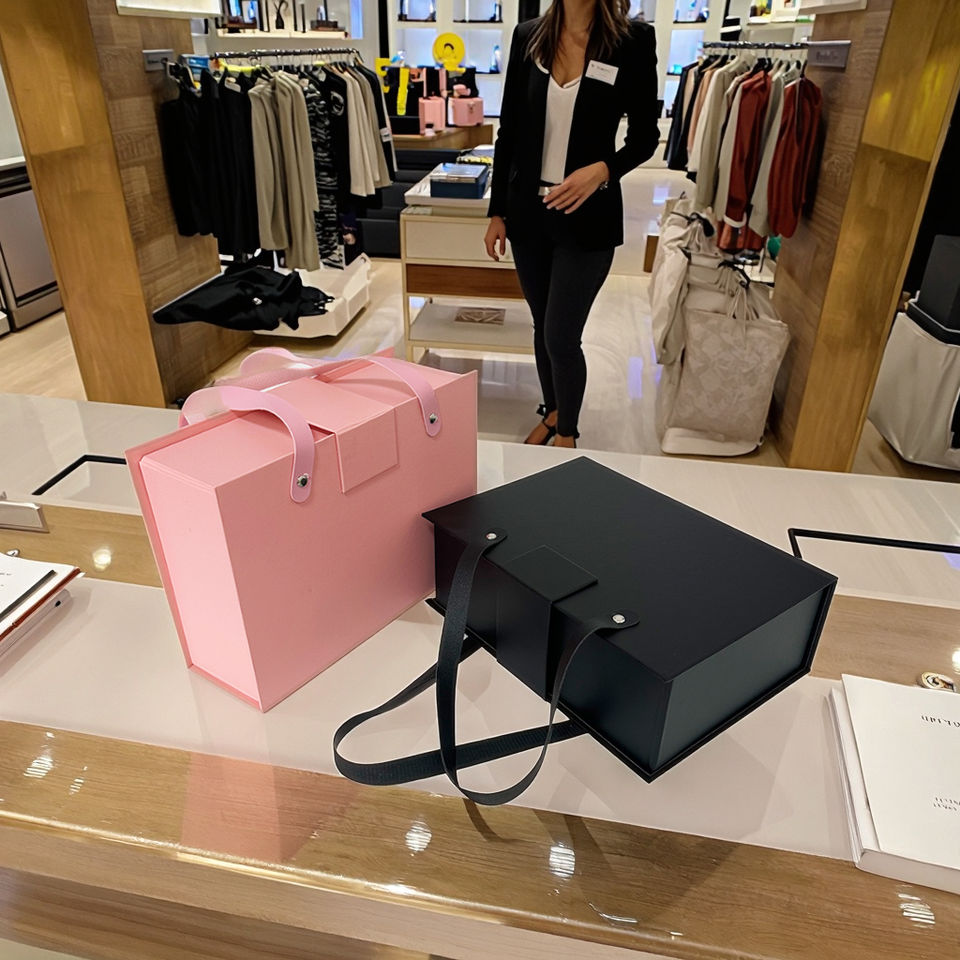 Valise à Cosmétiques de Luxe Cadeau Logo Personnalisable Rose Noir Boîtes Magnétiques Rigides Poignée Mallette en Papier Recyclé Doublure en Éponge