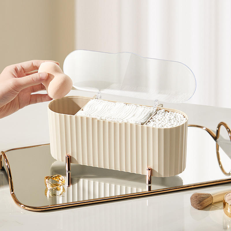 Boîte de rangement de luxe pour cotons démaquillants avec couvercle, organiseur de maquillage en plastique pour bureau, design tiroir de rangement cosmétique