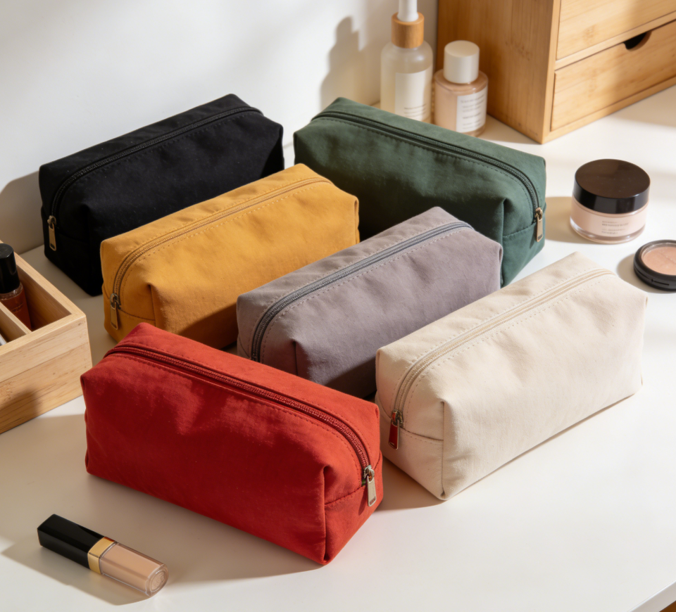 Étui à maquillage en toile de coton de luxe avec fermeture éclair, logo personnalisé, trousse de toilette de voyage, pochette à crayons et à pièces, sac à maquillage tendance