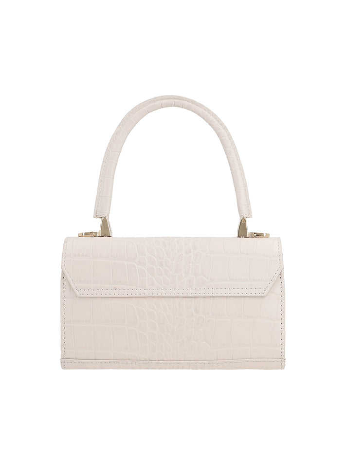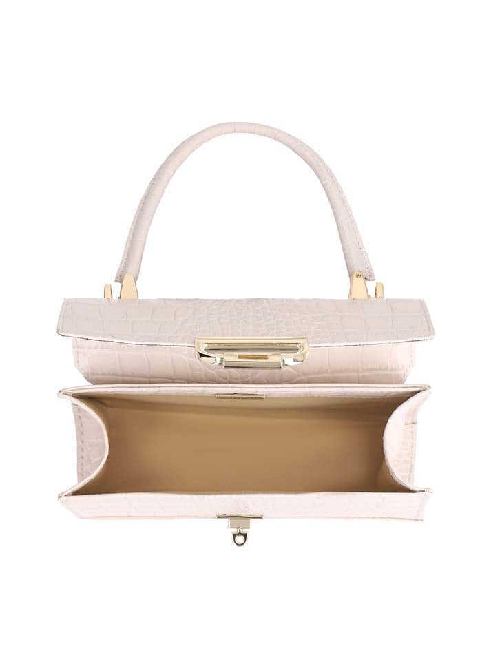 Sac à main de luxe pour femme, texture croco, mini, élégant et structuré, avec anse supérieure, fermeture à fermoir doré et bandoulière.