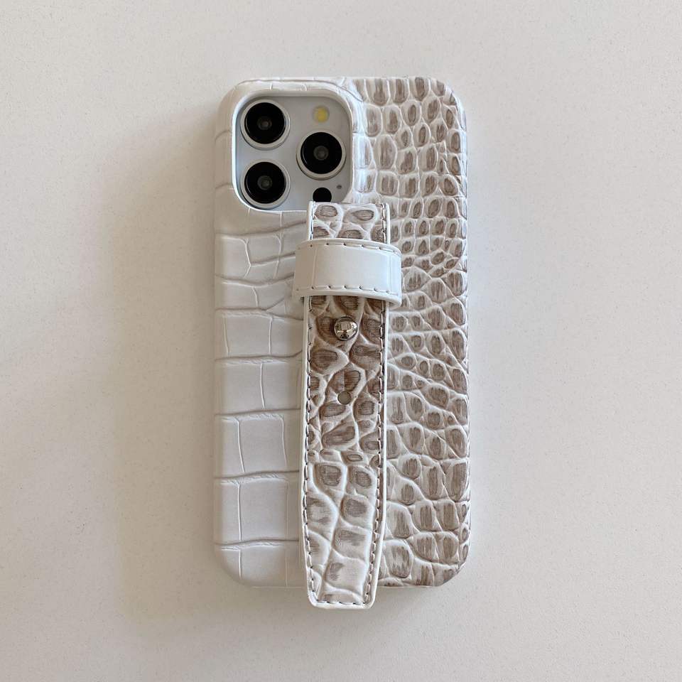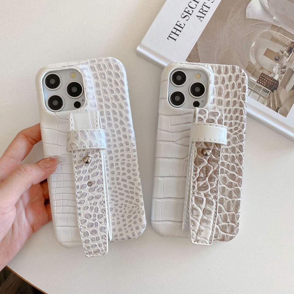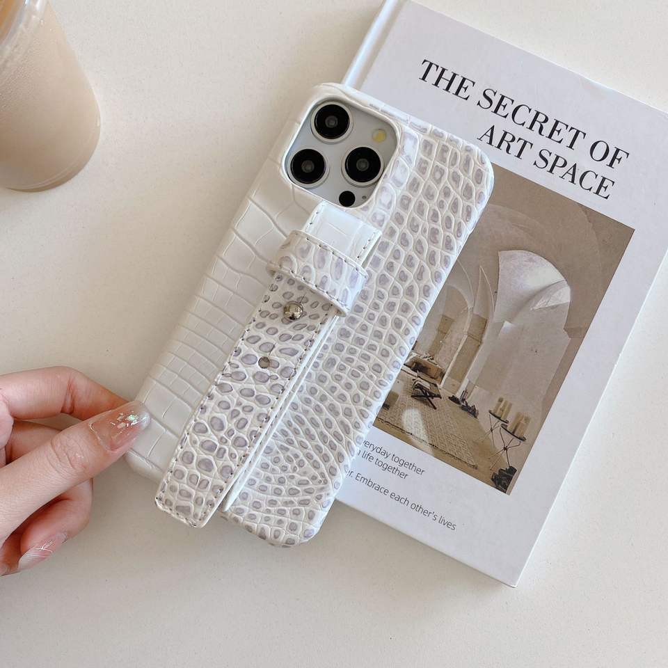 Luxury Crocodile Texture Phone Case with Wrist Strap for iPhone 17 16 15 14 13 12 Pro Max , Elegant Pu Leather Protective Cover