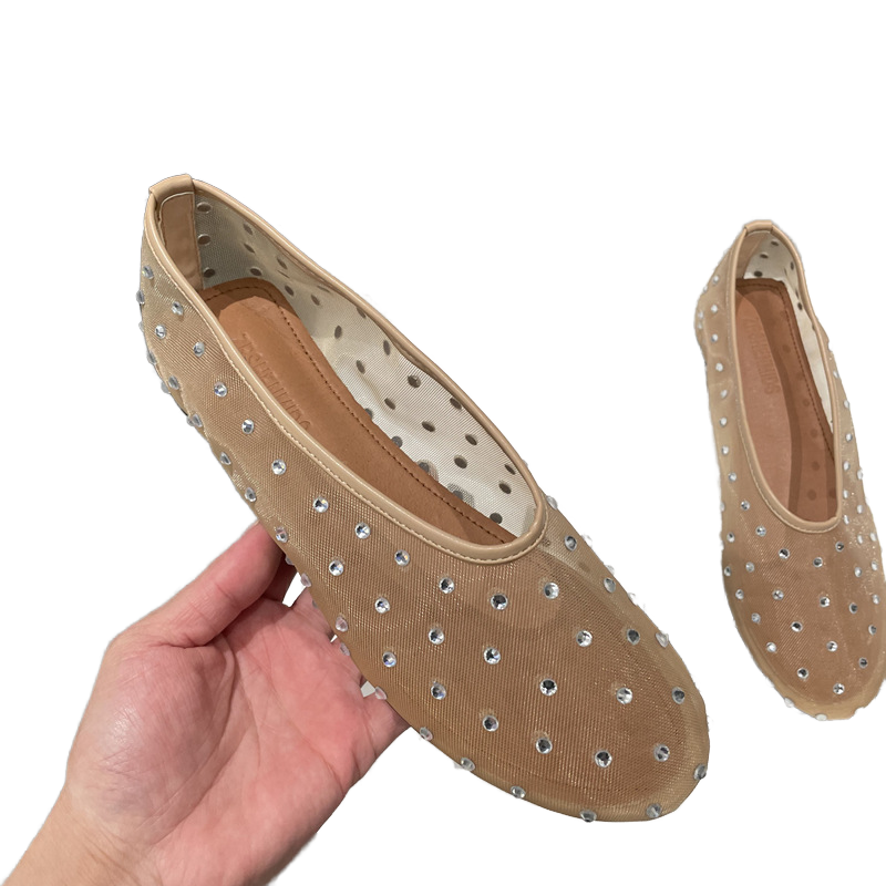 Mules élégantes en cuir à plateforme avec rivets en cristal, respirantes et confortables, pour femmes, chaussures de ballet