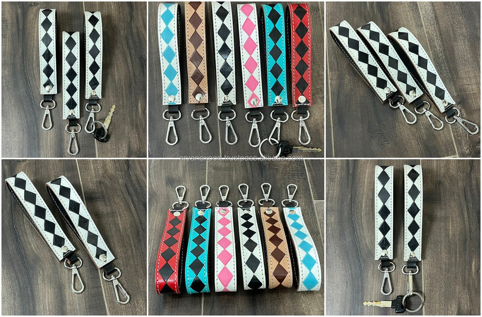 Nom du produit:Porte-clés en cuir véritable à carreaux
