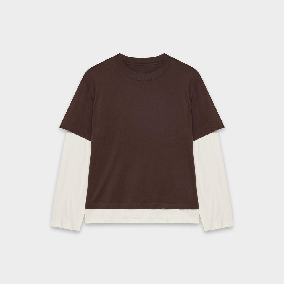 T-shirt de luxe personnalisé en coton à col rond et manches longues pour femme, coupe ample, imprimé décontracté, en tissu tricoté uni, double couche