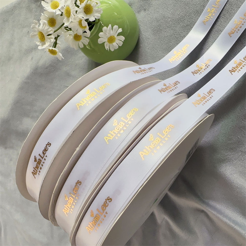 Ruban de satin de polyester avec logo en feuille d'or personnalisé de luxe quantité minimale de commande 1 rouleau de rubans blancs pour cheveux d'emballage cadeau rubans de soie