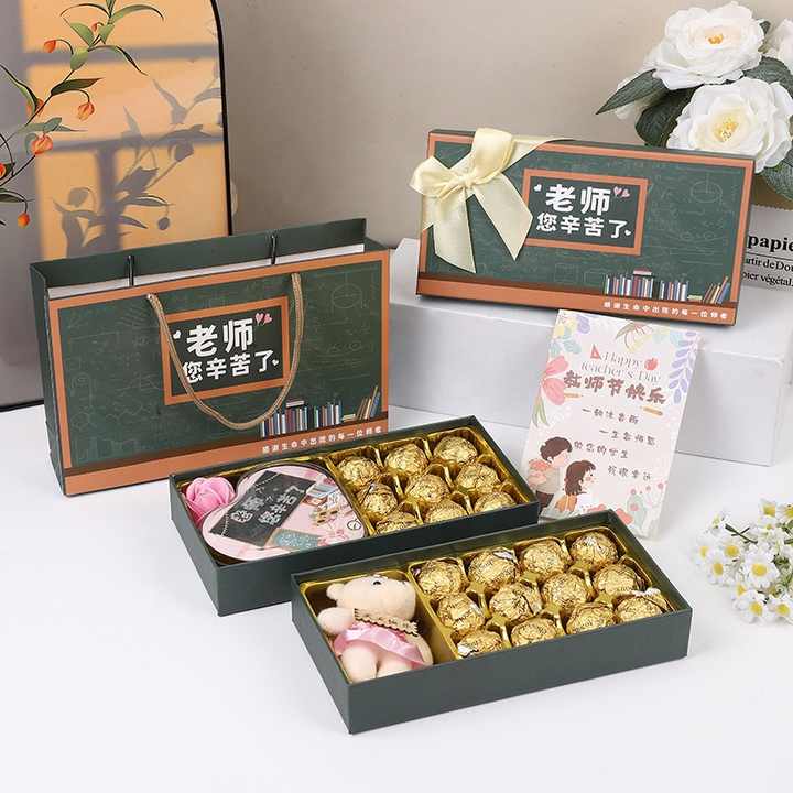 Boîte de chocolat en tableau gris personnalisé de luxe avec insertion de feuille d'or Ballotin Bonbons Barre de bonbons de mariage Emballage de luxe pour usage alimentaire