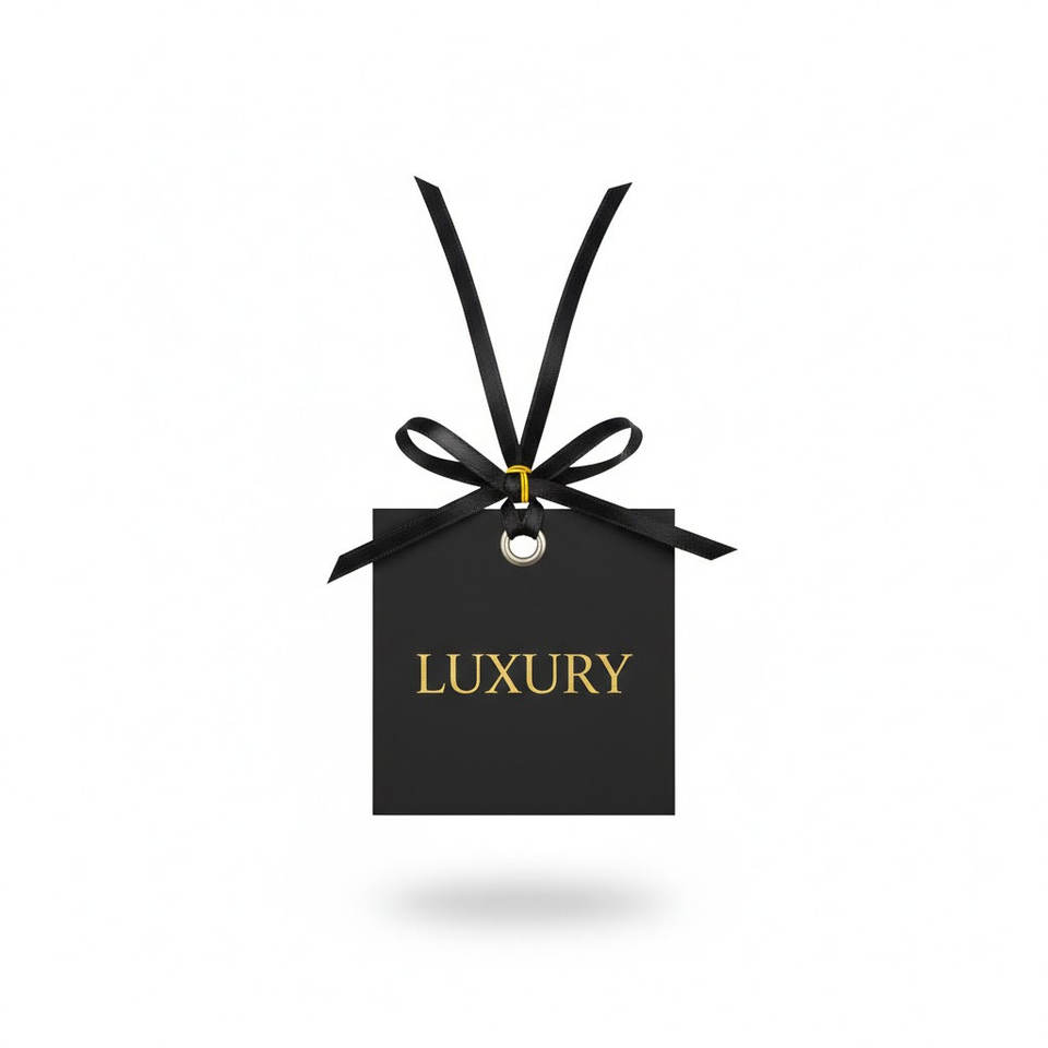 Cartes d'étiquettes suspendues personnalisées de luxe, fabriquées en carton crème texturé épais avec lettrage élégant en feuille d'or