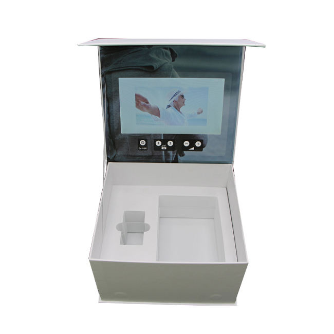 Boîte en papier noir de luxe avec logo personnalisé, écran LCD, cassette vidéo, carte-cadeau, spécifications pour la publicité