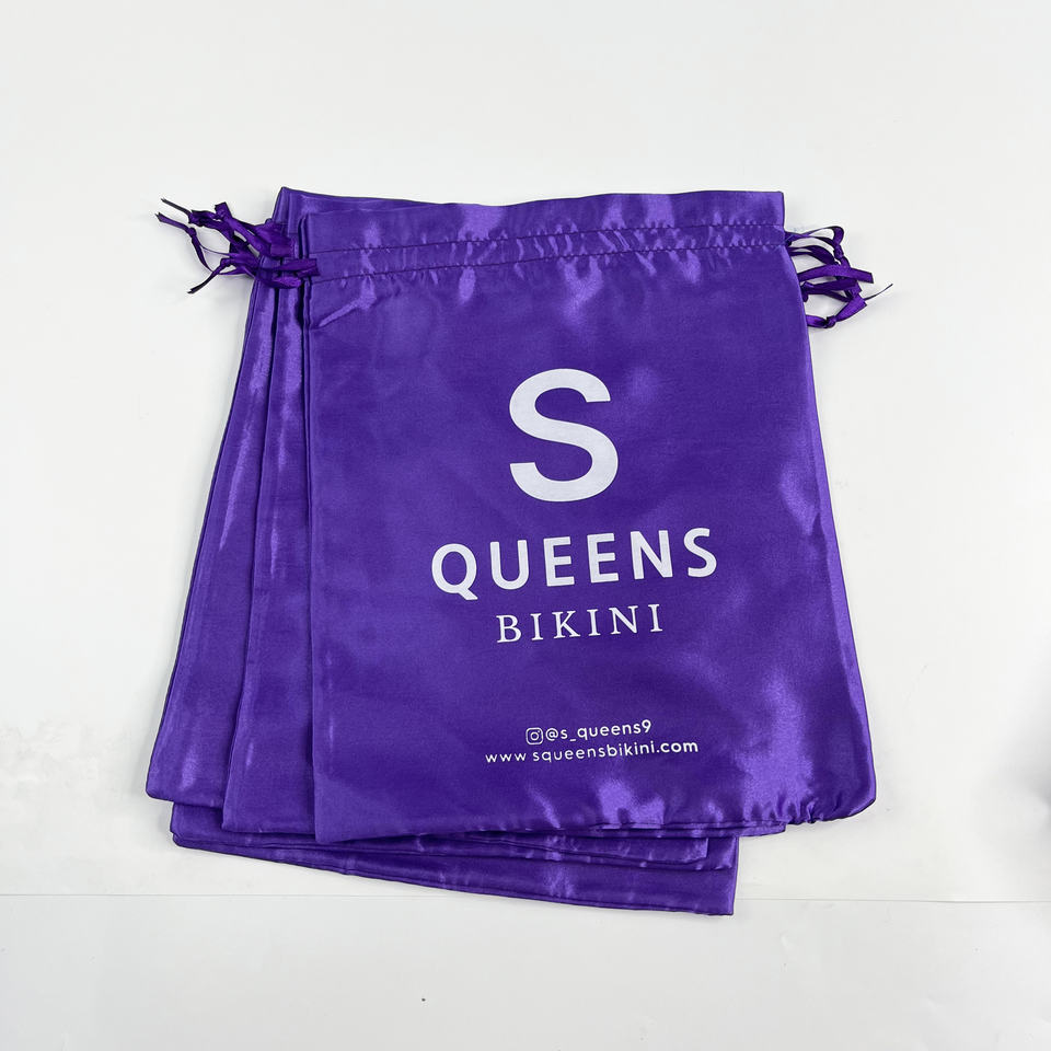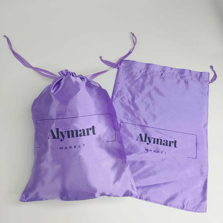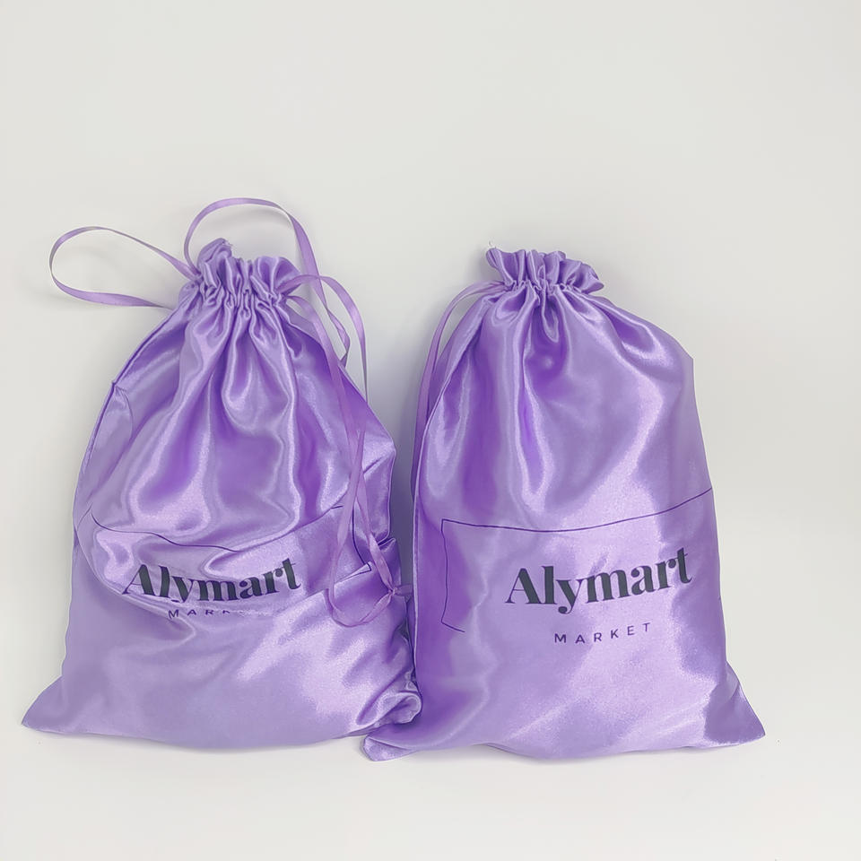 Sacs en soie personnalisés de luxe avec logo, pochettes anti-poussière pour perruques, sacs à cordon en satin violet pour bijoux et cosmétiques