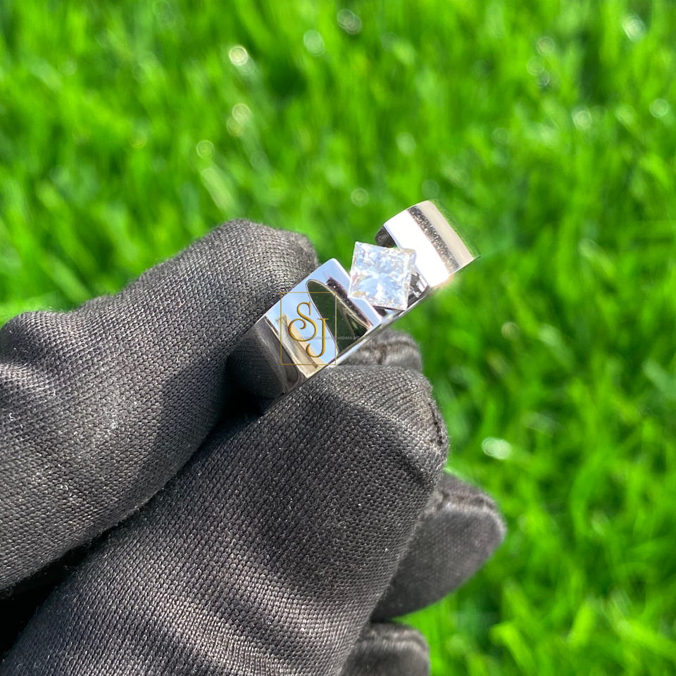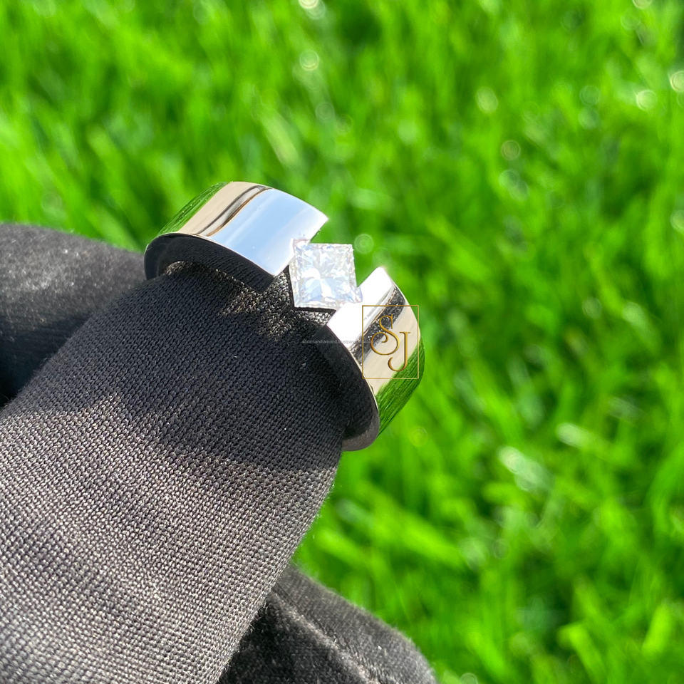 Luxury Custom Men's 14K White Gold Solitaire Princess Diamond Band Original Iced Nugget Cluster Pinky Bling Wedding Engagement