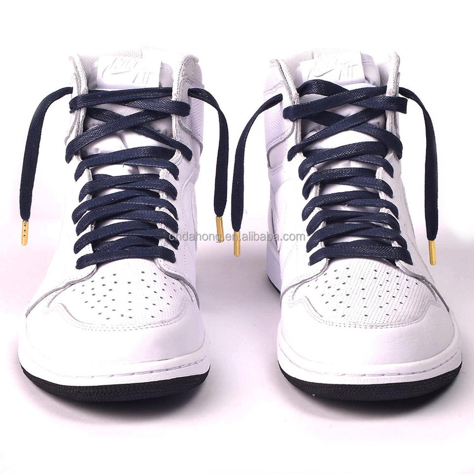 Lacets de luxe plats en coton ciré pour chaussures de sport en cuir avec embouts métalliques de qualité supérieure Une paire emballée dans un sac à fermeture éclair en plastique. Ou package personnalisé.