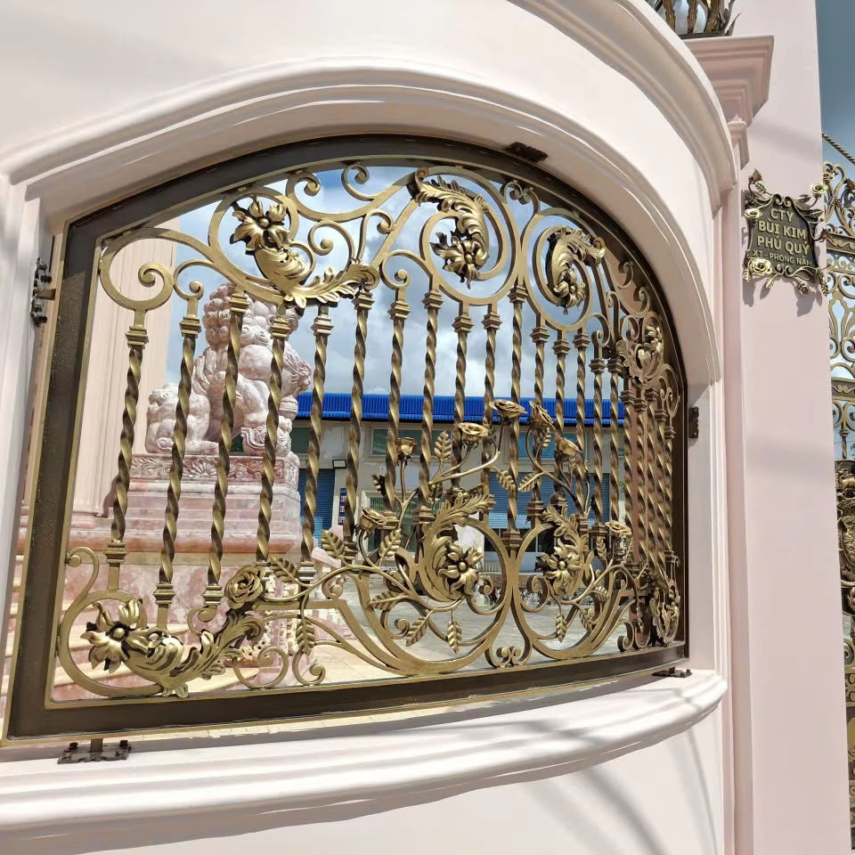 Clôture en fer forgé sur mesure, peinte en poudre, de luxe, pour villas, panneaux de clôture de jardin ornementaux, installation facile, métal durable
