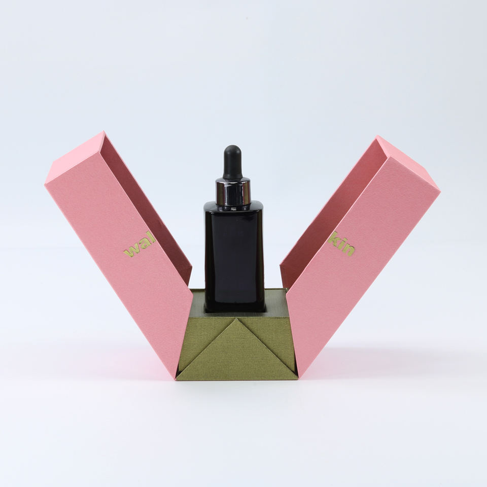Boîte rigide personnalisée de luxe recyclable avec fermeture magnétique, impression numérique UV, double tirage rose noir violet pour boîte en papier pliable