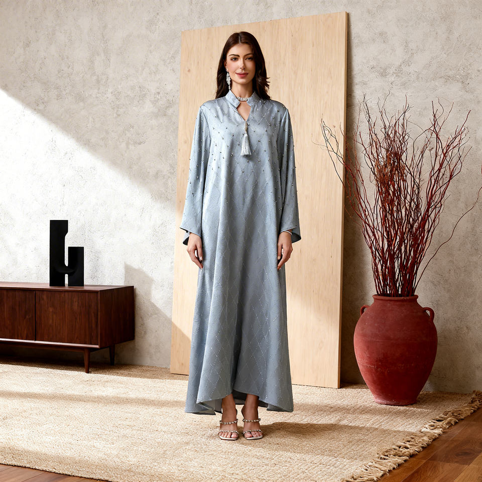 Robe Abaya en polyester ornée de strass sur mesure de luxe pour femmes musulmanes, élégante pour les soirées, nouveau style