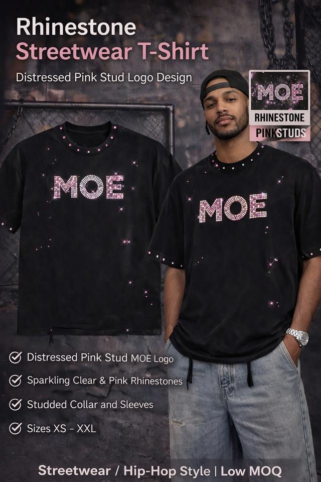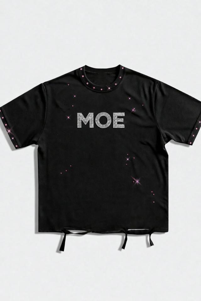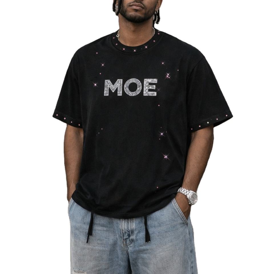 T-shirt de luxe personnalisé en strass noir 100% coton, chemises pour hommes scintillantes, col rond, streetwear d'été, tee-shirt en cristal brillant, design OEM