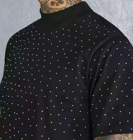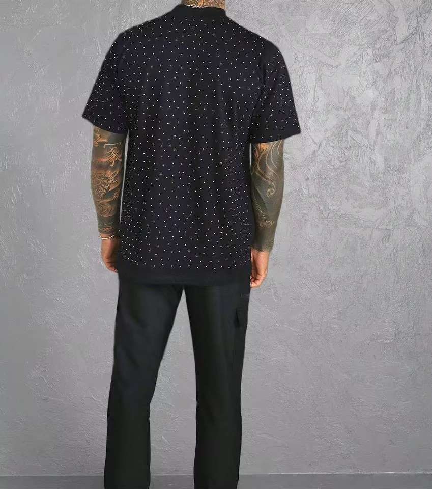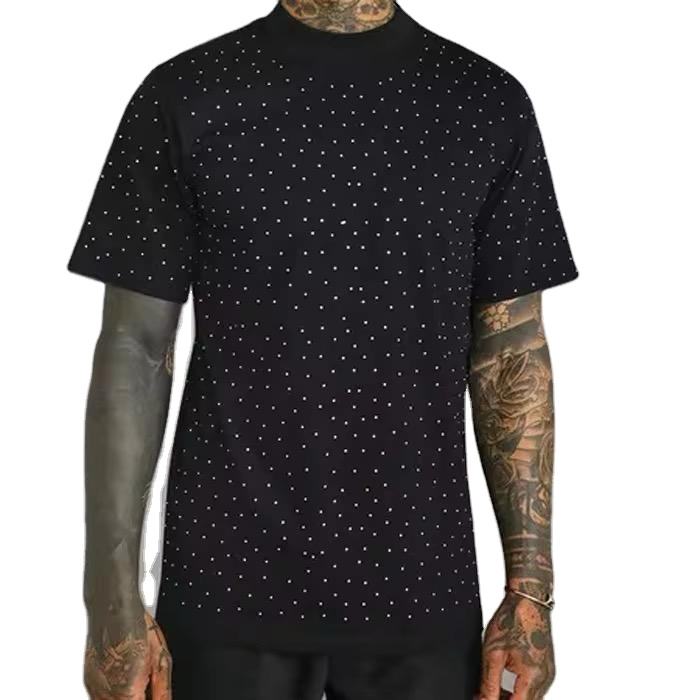 T-shirts de luxe personnalisés en strass noirs 100 % coton pour hommes, col rond, streetwear d'été, tee-shirt bling en cristal, conception OEM