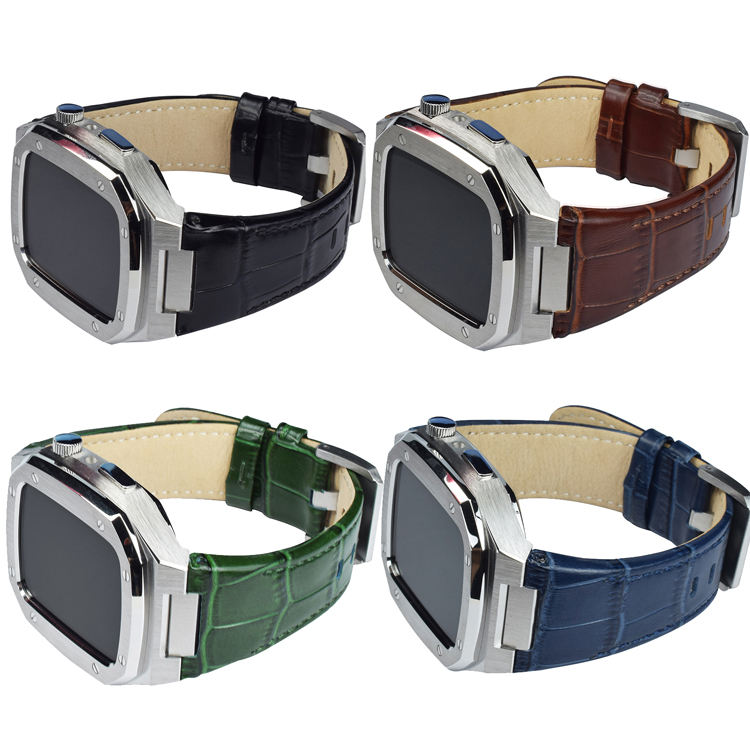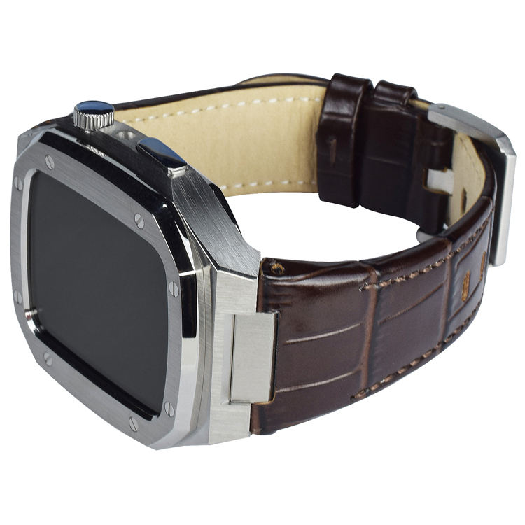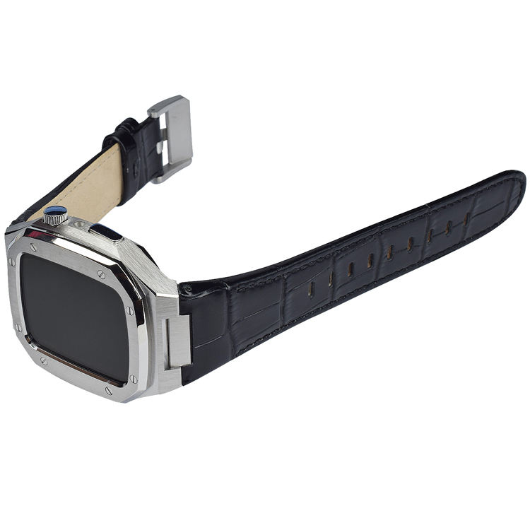 Boîtier de montre modifié de luxe en acier inoxydable, bracelet de montre en cuir avec boîtier de montre