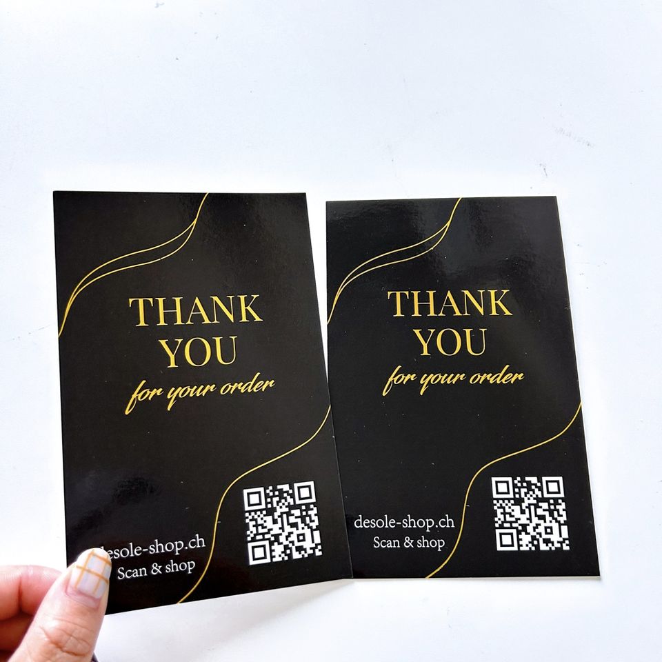 Cartes en papier noir de luxe personnalisées avec logo, épaisseur personnalisée, estampées à l'or, carte postale, carte de remerciement pour les petites entreprises